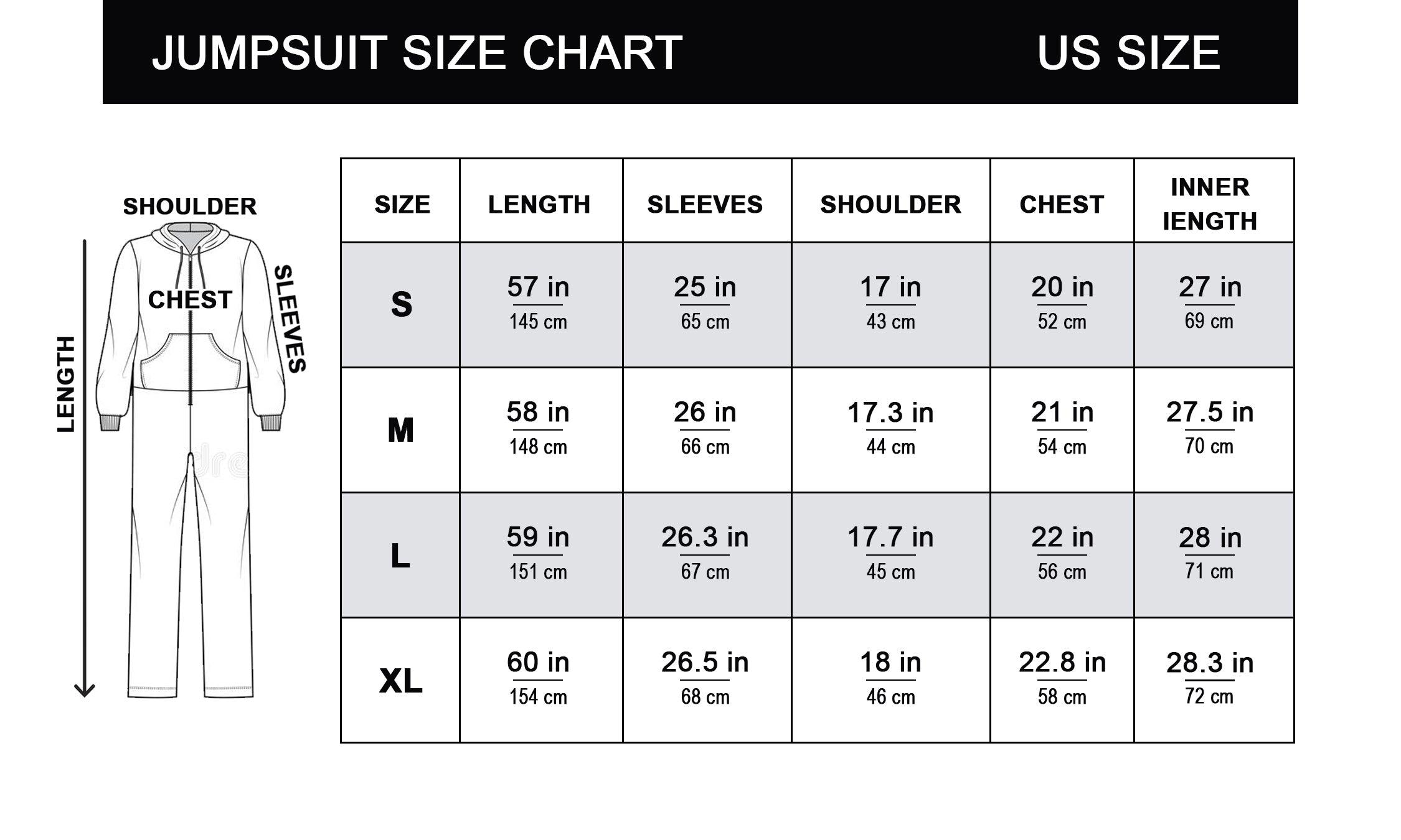 Each jumpsuit is custom printed, cut, and sewn just for you when you place your order ? there may be small differences in the design on the seams and/or arms due to the custom nature of the production process!