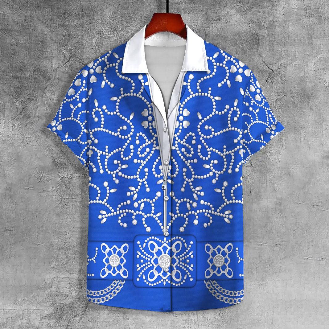 Gearhomie Elvis Blue Swirl UNISEX CASUAL HAWAIIAN SHIRT