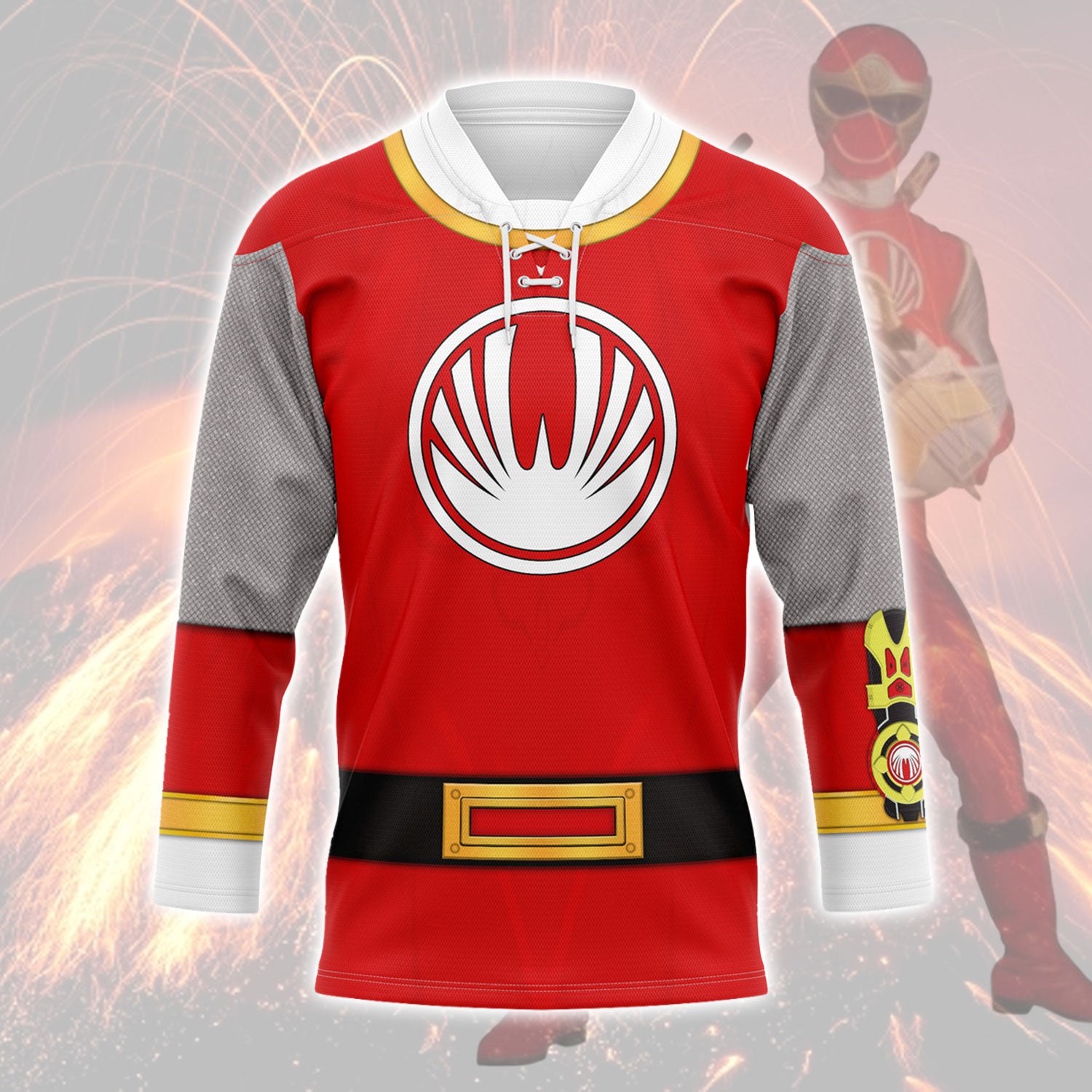 Gearhomie Red Power Rangers Ninja Storm Hockey Jersey Sweatpants